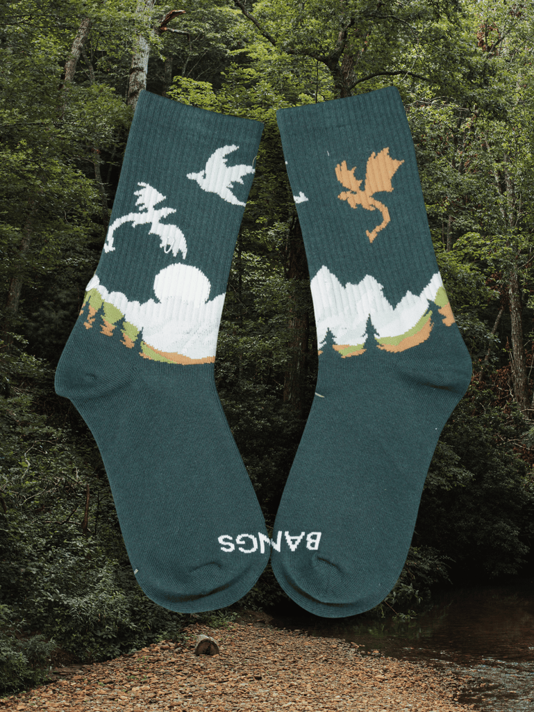 Bundle includes two pairs of Emerald Mountain Dragon Socks